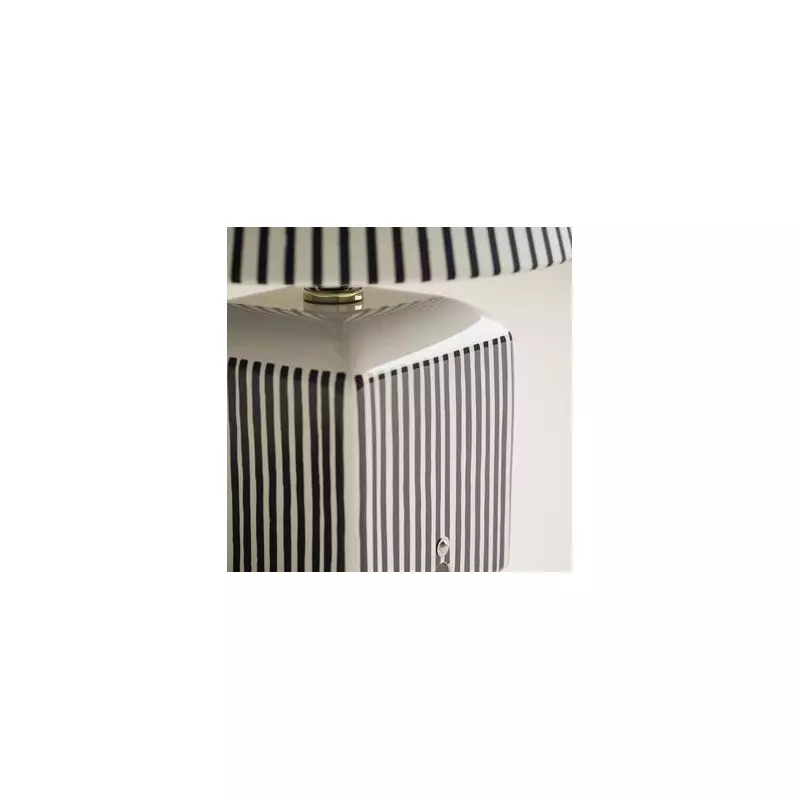 The Joshua Ceramic Striped Rechargeable Table Lamp is priced at £49.50 and is available in both navy and green colour options. Its design features a distinctive striped ceramic base paired with a classic empire shade for a cohesive and bold aesthetic.