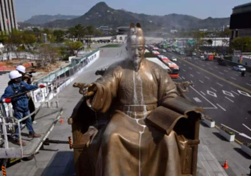 In Seoul, South Korea, workers conducted spring cleaning at Gwanghwamun Square, meticulously washing the bronze statue of King Sejong the Great. This 15th-century monarch is celebrated for his contributions to Korean culture and language, making this annual maintenance a symbolic act of preserving national heritage.