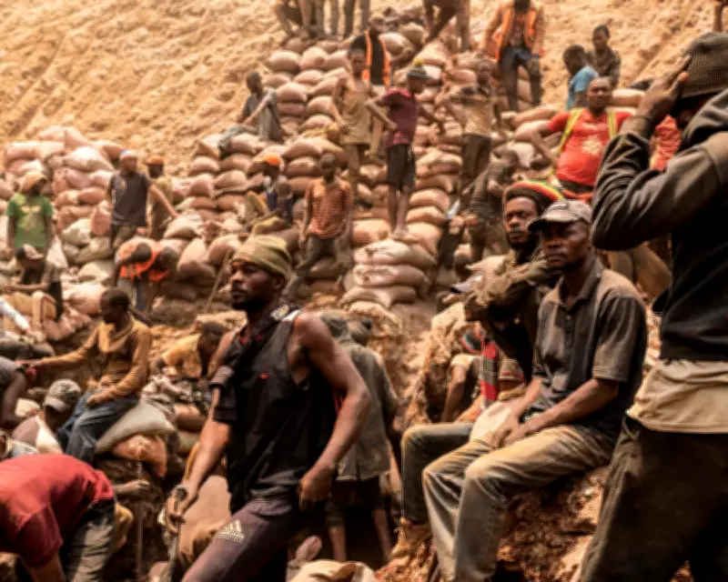 Artisanal cobalt miners in the Democratic Republic of the Congo. Wind turbines, solar panels and electric car batteries all depend on the mining of critical minerals. Photograph: Junior Kannah/AFP/Getty Images