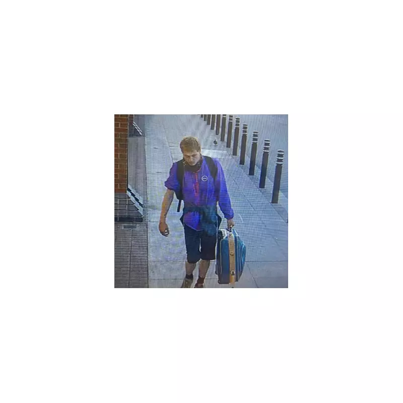 The wanted individual is described as a white man, aged around 30, approximately 5ft 10ins tall, with dirty blond hair. At the time of the robbery, he was seen wearing a distinctive purple jacket, three-quarter length shorts, and dark Nike Air Max 95 trainers.