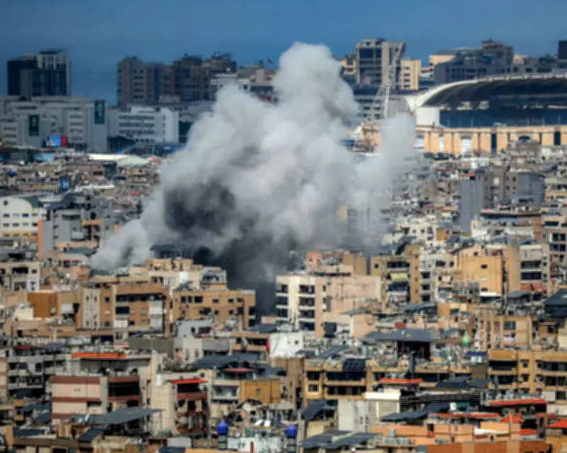Smoke billows from the aftermath of an Israeli strike in the southern suburbs of Beirut, captured in a photograph by Ibrahim Amro for AFP/Getty Images. This image underscores the volatile tensions in the region, as global attention shifts to escalating rhetoric from the United States.