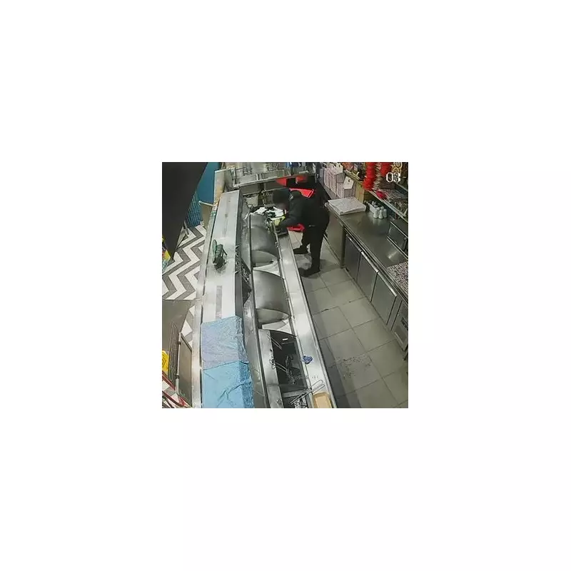 The incident occurred in the early hours of Saturday, January 3, 2026, at Jack the Chipper on Creek Road. CCTV footage captured the moment a figure in a beanie hat hopped off a bicycle before forcefully kicking in the shop's glass door.