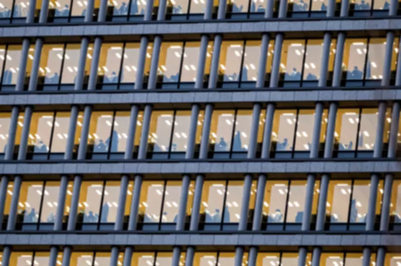 Meanwhile, in Tokyo, Japan, corporate employees are seen at their desks in the Chiyoda district, a reminder of the routine work life that continues amidst global events. The office scene contrasts sharply with more dramatic images from the region.