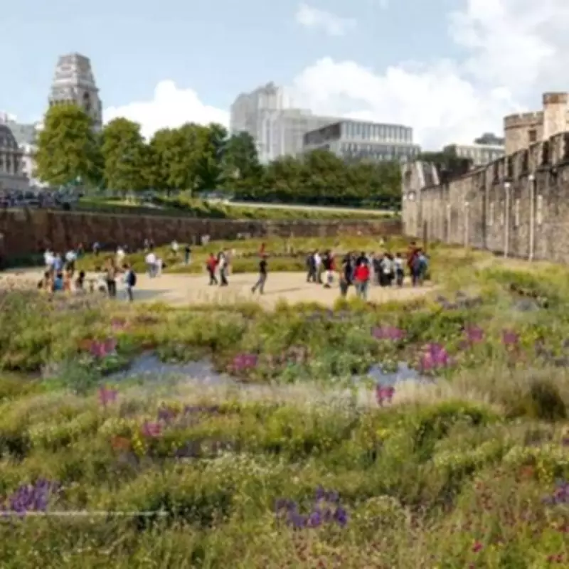 The proposed redevelopment centers on water as a key element, aiming to create a dynamic environment of ponds, wetlands, meadows, and grassland areas. This initiative responds directly to contemporary challenges such as biodiversity loss and water scarcity, while reconnecting visitors with the Tower's defensive history. The moat, which has remained dry for nearly two centuries, will be transformed into a vibrant public space accessible on all three sides, featuring pathways and seating for enhanced visitor experience.