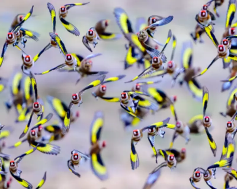 - Goldfinches in Germany: A charm of finches was captured flying over a field in Sieversdorf, Germany, showcasing the beauty of avian life in rural landscapes.